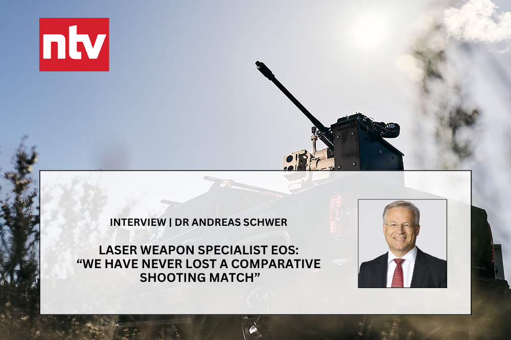 German broadcaster ntv has published an in-depth interview with EOS’ CEO, Dr Andreas Schwer, examining the growing demand for counter-drone capability, high energy laser weapons (HELW) and space-related technologies across Europe. The article highlights Germany as EOS’ number one target market in Europe, supported by plans to establish operational units in both Germany and France.